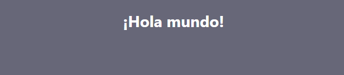 Como se ve, en un mismo fichero se encuentra la lógica, los estilos y el código HTML. El resultado de ejecutar este código será el siguiente. Simplemente da un valor a la variable name, que luego mostrará en el HTML. En cuanto al CSS, pone el fondo gris con letra blanca para todo el body y luego centra los elementos cuya clase sea main. Bastante claro todo y con menos código que otras tecnologías.